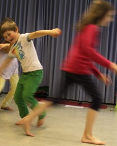 Konzept: So verschieden die Bewegungsbedürfnisse von Erwachsenen und Kindern manchmal sind, so viel können sie sich gegenseitig geben – Inspriation und Halt, gemeinsame Freude und unbeschwerte Ver-Bindung zum Beispiel. An diesem Vormittag soll für die Ideen von Groß und Klein und neben dem gemeinsamen Kunst-Schaffen auch für kreatives Blödeln Platz sein. Weil sich künstlerisches Tun auch aus dem Nach-Innen-Hören und Zuschauen nährt, und die Bewegung aus der Ruhe Kraft holt, gibt es neben dem Tanzen auch allerlei andere Impulse. Neben „coolen Sounds“ aus dem Lautsprecher gibt es auch einfühlsame und mitreissende Bewegungsbegleitung auf Klavier und Trommeln – eine ungewohnte und besondere Qualität!